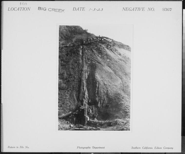 Big Creek Powerhouse #3 - Bird's eye view of Powerhouse #3 location. [incline railroad under construction]