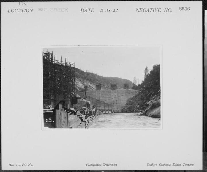 Big Creek Powerhouse #3 - Dam #6 with intake tower forms and scaffolding in upper left.