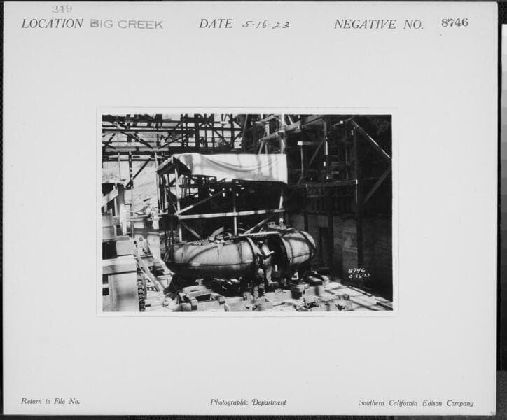 Big Creek Powerhouse #3 - Half of stator #2 [on rail car moving into PH#3 with forms up].
