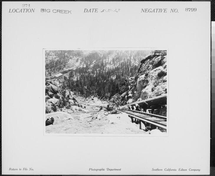 Big Creek Powerhouse #3 - Looking down penstock line to PH #3 and Camp 38