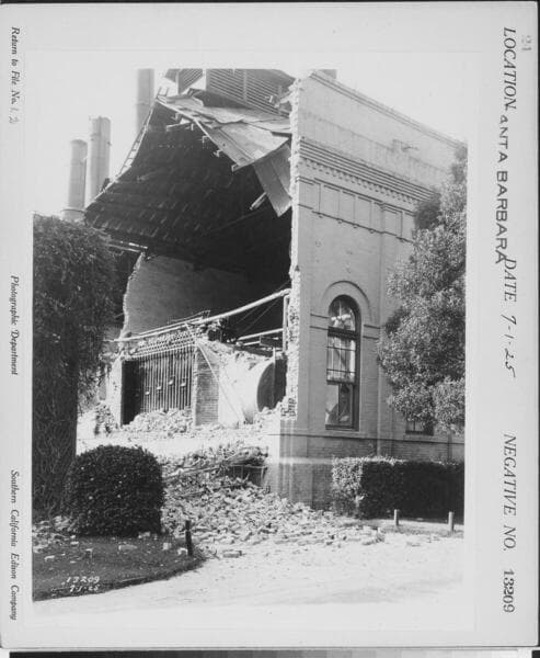Santa Barbara Steam Plant - walls collapsed at plant during earthquake.