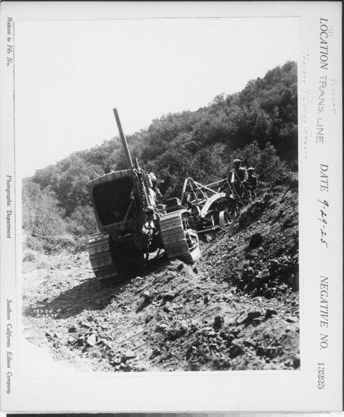 Vincent Transmission Line - [road construction - two cats pulling grader].