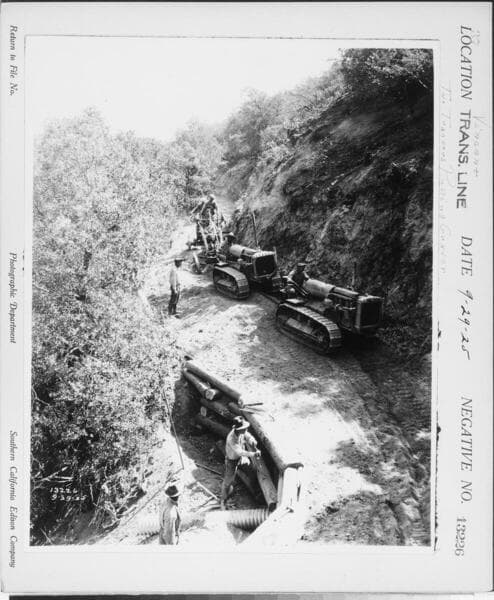 Vincent Transmission Line - [road construction - two cats pulling grader].