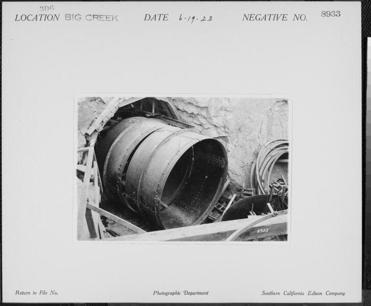 Big Creek Powerhouse #3 - Tunnel 3 outlet - assembling manifold.