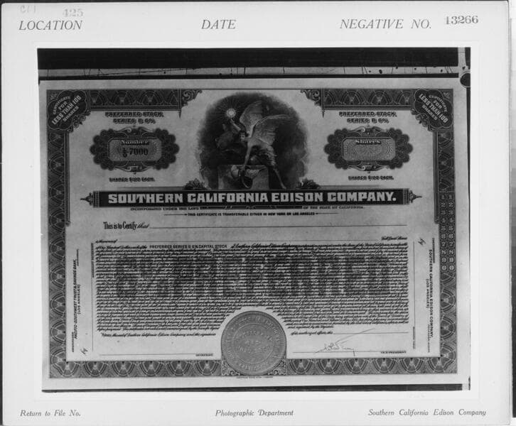 C1.1 - Charts miscellaneous - Edison Common Stock Certificate