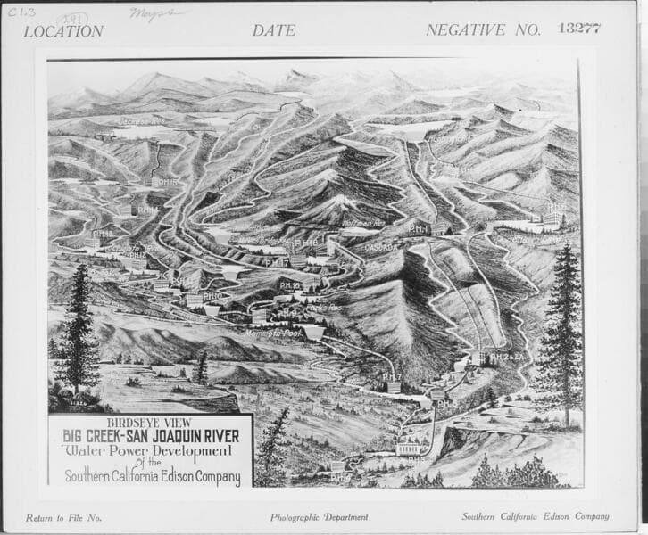 C1.3 - Maps - Map of Big Creek development showing Powerhouses 1, 2&2A, 8, and 3.