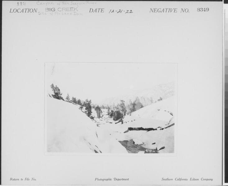Big Creek, Florence Lake Dam - Florence Lake frozen and covered with snow before dam construction.