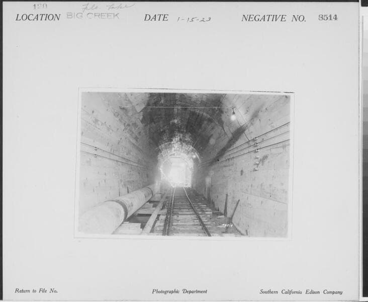 Big Creek, Florence Lake Dam - New concrete lining in Florence Lake Tunnel, Camp #60.