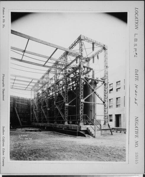 Long Beach Steam Station, Plant #2 - From west showing Transformer Racks.
