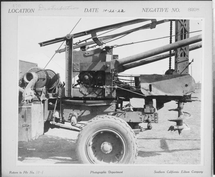 Distribution Lines - Earth boring machine (detail of right side) [Auger on rear of truck]