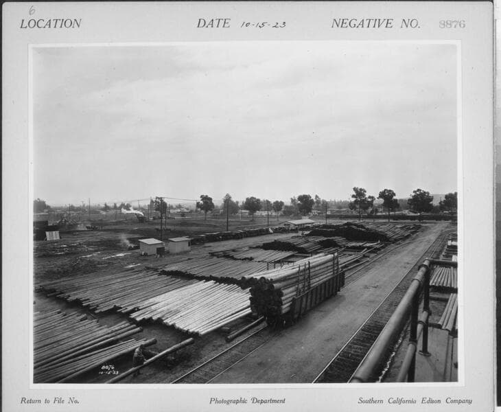General Store, Pole Yard - Alhambra Pole Yard viewed from tower - Poles and Oil Tanks for pole treating plant.