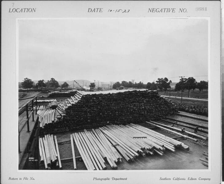 General Store, Pole Yard - Alhambra Pole Yard viewed from tower - Poles and Oil Tanks for pole treating plant.