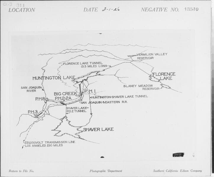 C1.3 - Maps - Relief map of the "Ultimate Projected" hydro-electric development on the San Joaquin River for Edison's Big Creek Project. Padget conception.