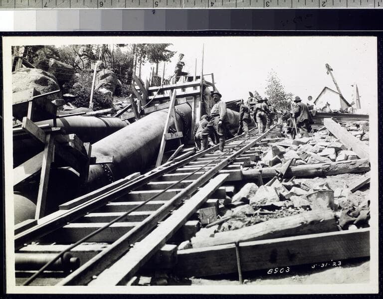 Big Creek #1 - Penstock Unit 3 - skidding pipe into place.
