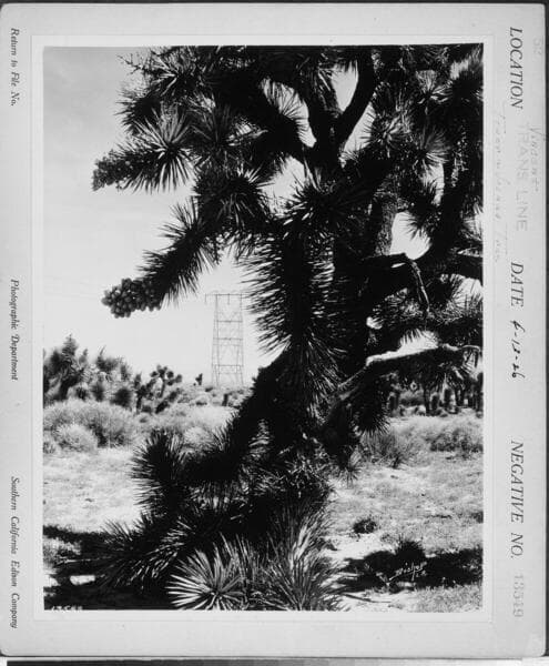 Vincent Transmission line - Section of completed Vincent T/L near Domino, in the Antelope Valley. [Joshua Tree woodland.] .