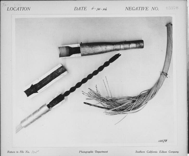 T2 Testing - Showing test on insulator cross arm, Long Beach Transmission Line Tower.