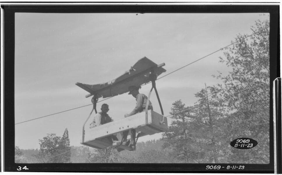 Big Creek, Herminghaus Ranch - Right cable tower and gauging car at Miller and Lux gauging station.