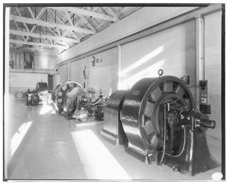 Mill Creek 1, 2&3 Powerhouse - Mill Creek 1 Powerhouse - Interior [shot of generators.]