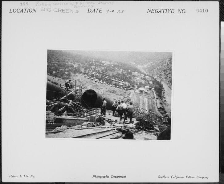 Big Creek Powerhouse #3 - PH #3 - placing next to last section of pipe for 4th unit penstock.