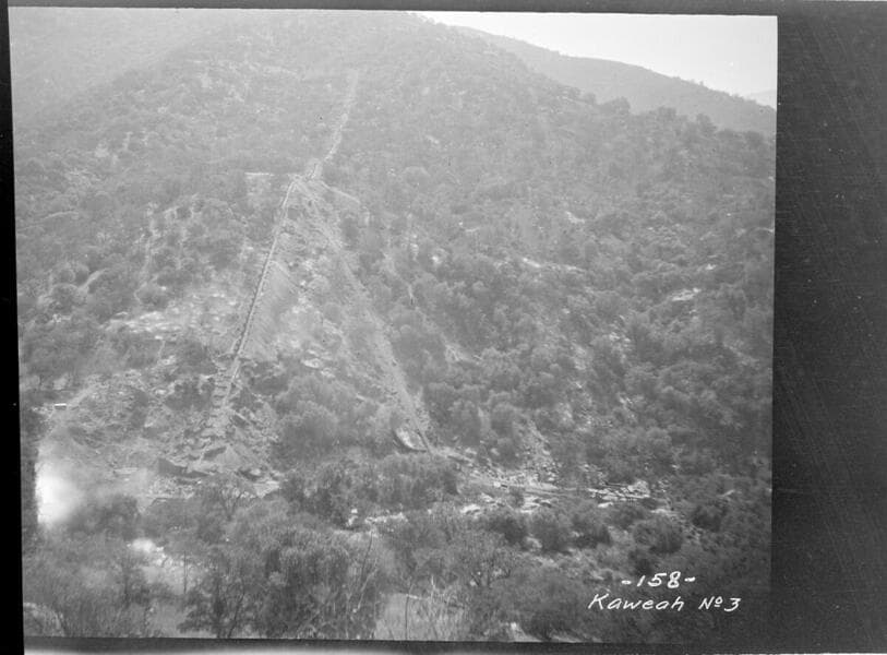 A side view of the Middle Fork conduit at Kaweah #3 Hydro Plant while under construction