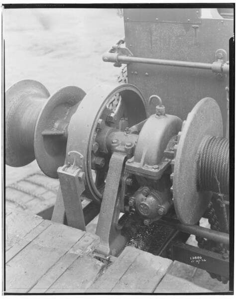 I1 - Inventions/Developments - Winch on truck showing new type of brake (left).