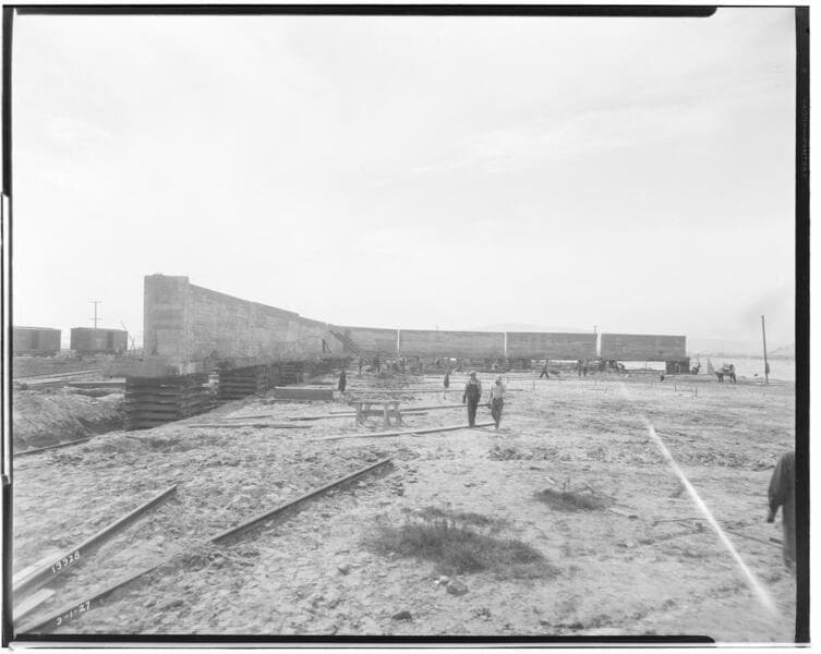 Long Beach Steam Station, Plant #3 - Section of concrete [fuel oil retainment] wall in place.