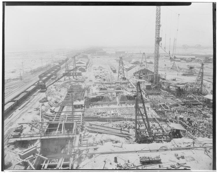 Long Beach Steam Station, Plant #3 - Looking down on whole layout from roof of Plant #2.