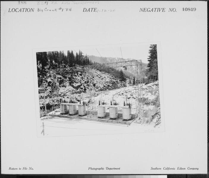 Big Creek, Powerhouse #1 - Snow in Cascada, Kerckhoff Dome in background.