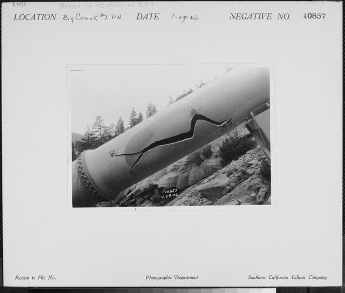Big Creek #1 - Break in #3 Penstock at Powerhouse #1