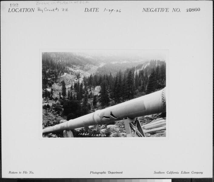 Big Creek #1 - Break in #3 Penstock at Powerhouse #1