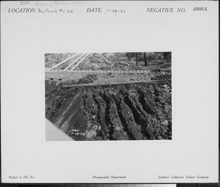 Big Creek #1 - Penstock Break P1L2 (4/6/46) - Afterbay of Powerhouse #1. [variant of 02-26525a].