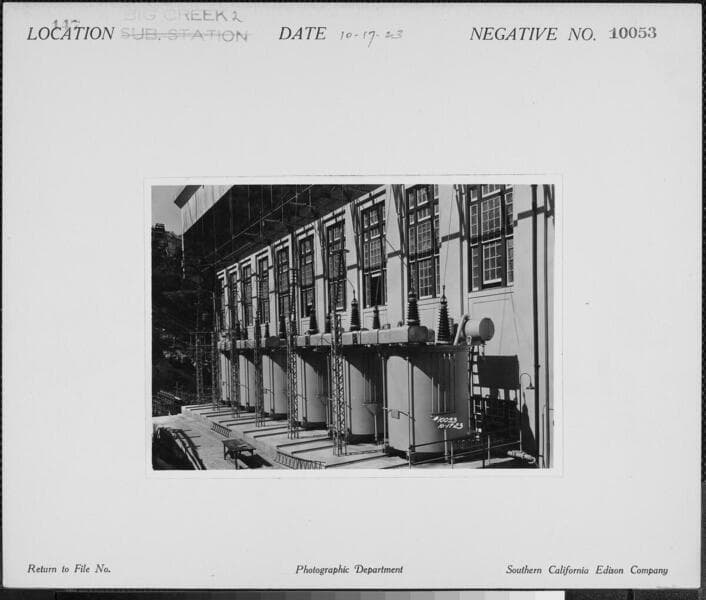 Big Creek PH #1 (Aug. 1922). ; Big Creek PH #1 (Aug. 1922). ; Rector Sub., 220kV transformers being installed (1931)