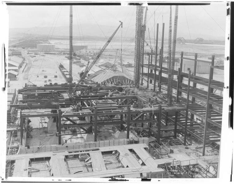 Long Beach Steam Station, Plant #3 - Looking down on whole layout from roof of Plant #2.