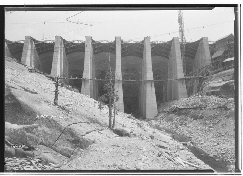 Big Creek, Florence Lake Dam - Looking across top of River Section over Arches and Buttresses.