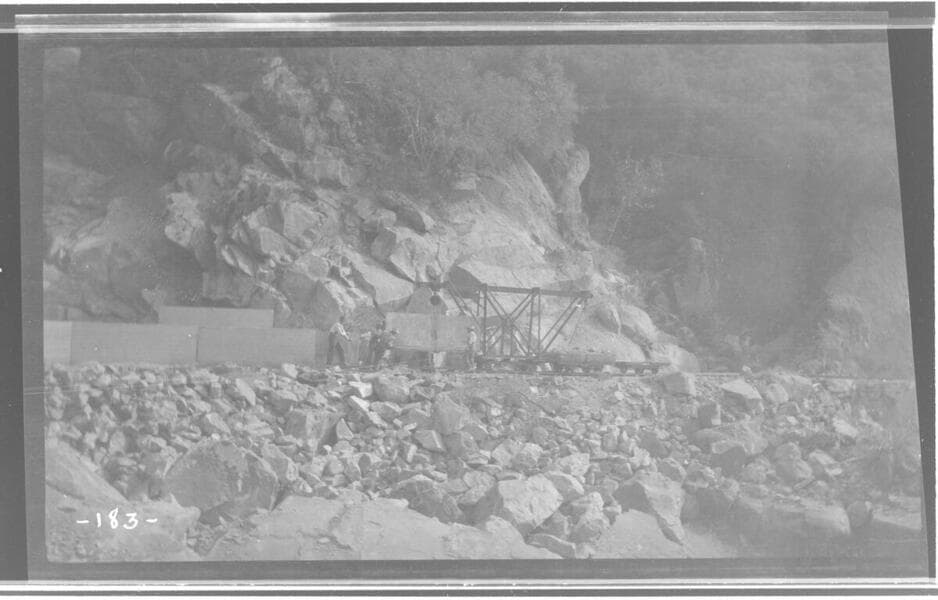 Transporting slabs by tramway in construction of Kaweah #3 Hydro Plant