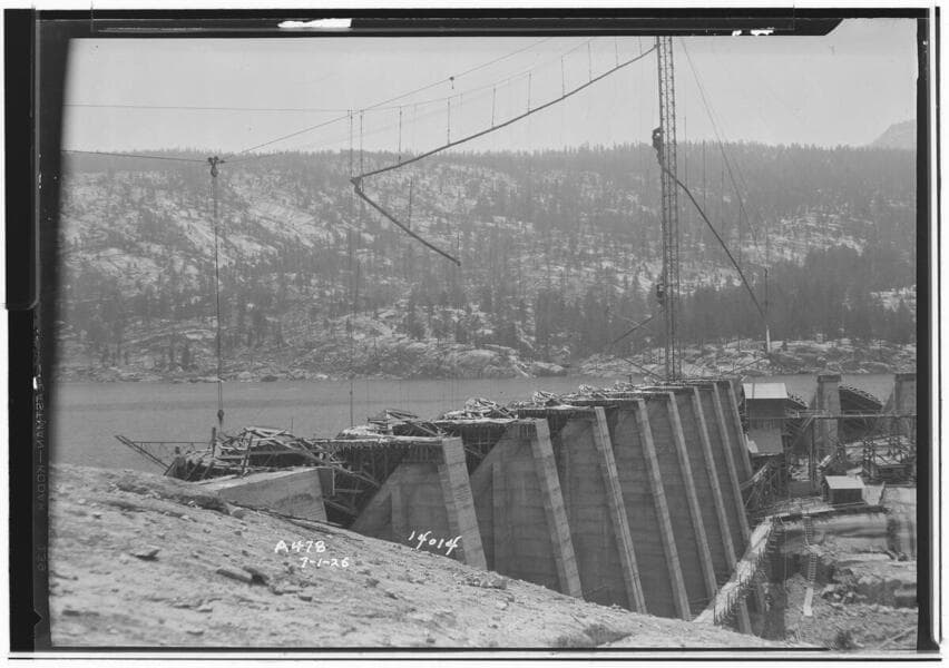Big Creek, Florence Lake Dam - Looking across downstream end of Buttresses [in river section]