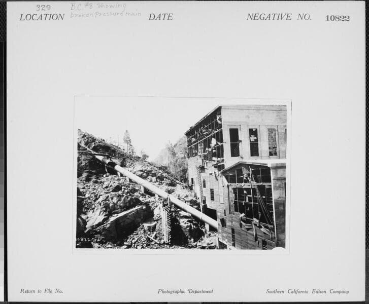 Big Creek Powerhouse #8 - Break in pressure main at Powerhouse #8.