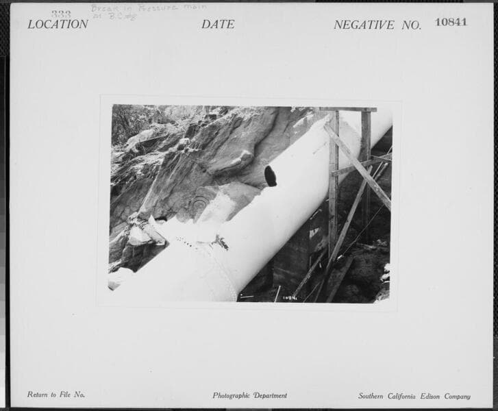 Big Creek Powerhouse #8 - Break in pressure main at Powerhouse #8.