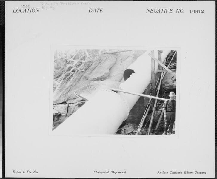 Big Creek Powerhouse #8 - Break in pressure main at Powerhouse #8.