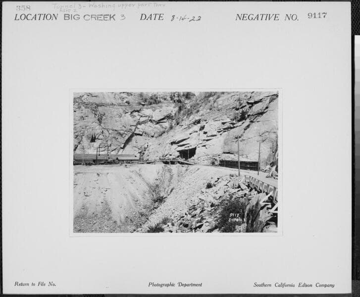 Big Creek Powerhouse #3 - Sluicing out Tunnel 3 thru Adit 2 at Camp 35.