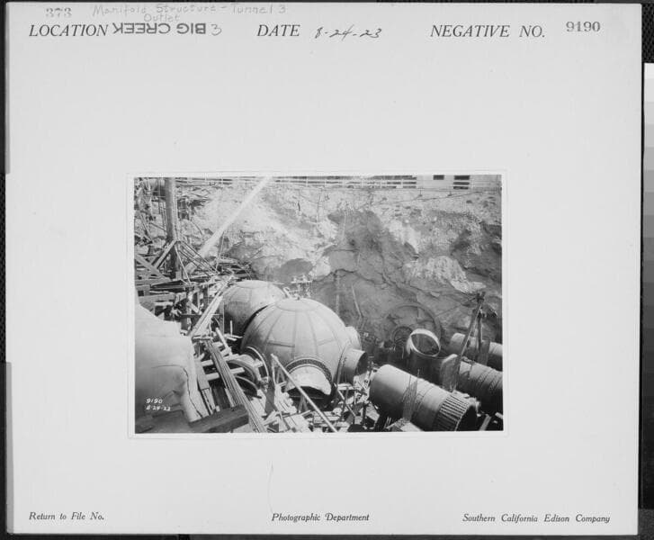 Big Creek Powerhouse #3 - Tunnel 3 outlet - assembling manifold.