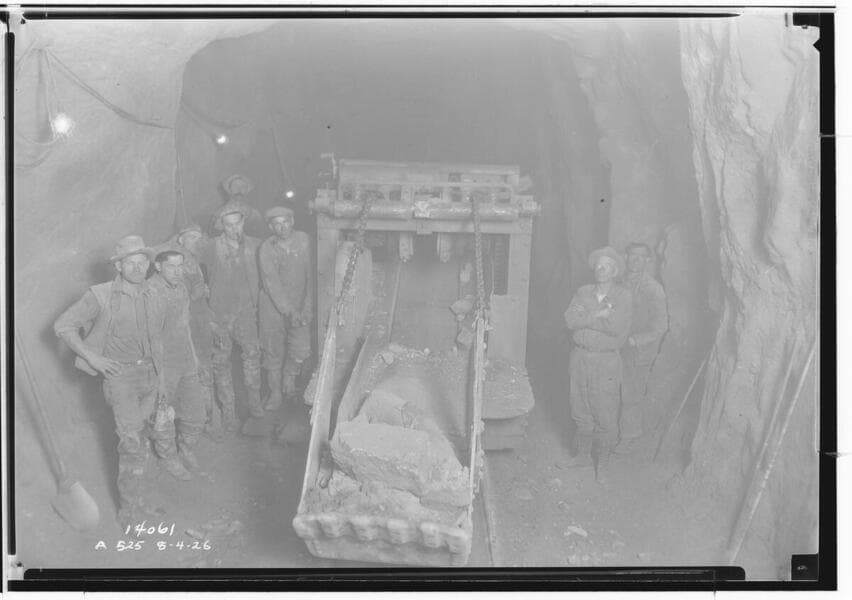 Big Creek, Huntington-Pitman-Shaver Diversion - Tunnel #7 Conway Mucking machine and Camp 72
