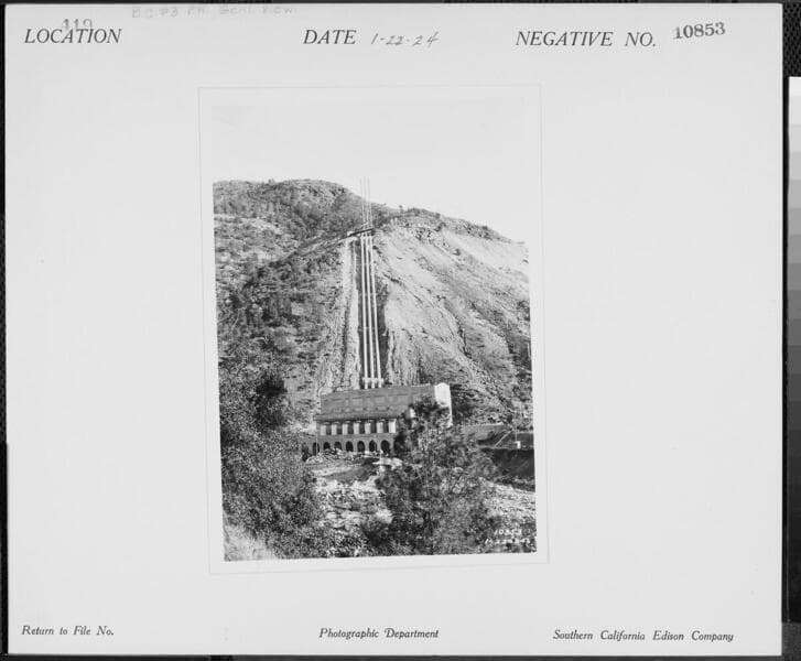 Big Creek Powerhouse #3 - PH #3 - Unit 4 general view tailrace and penstocks.