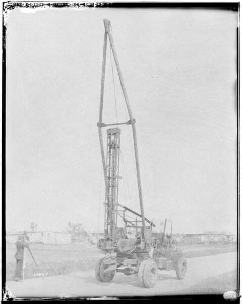 Distribution Lines - Earth boring machine (detail of left side) [Auger on rear of truck]