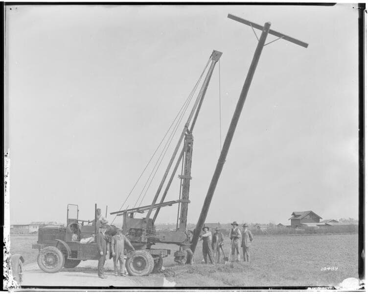 Distribution Lines - Earth boring machine in operation. [used for drilling holes and placing poles]