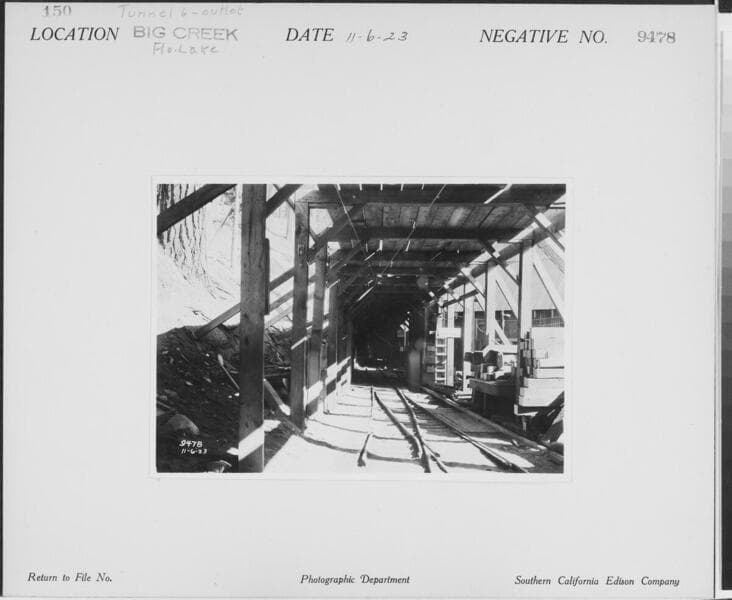 Big Creek, Florence Lake Dam - Ward Tunnel at outlet (Camp 60) showing the telemark.