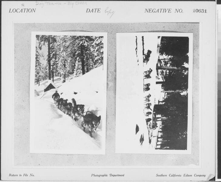 Big Creek Dog Teams - Sled dogs [with sleds in snow at Big Creek]
