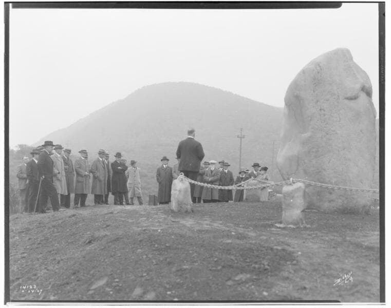 P1.1 - Group Portraits - Shot in front of Mill Creek #1 of people attending the dedication of H. H. Sinclair Monument.
