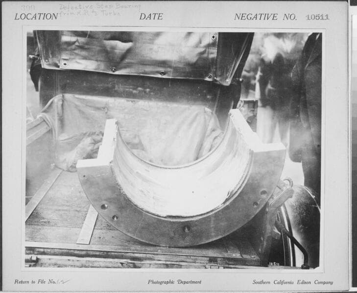 Kern River No. 3 - Men inside the large KR3 Sandbox showing baffels.