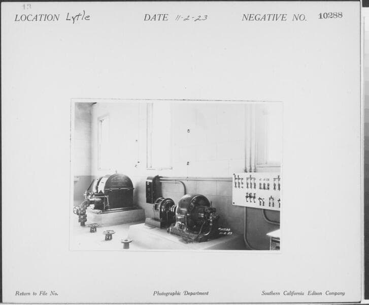 Lytle Creek, Fontana Powerhouse - [Interior shot showing exciters at Fontana Powerhouse]